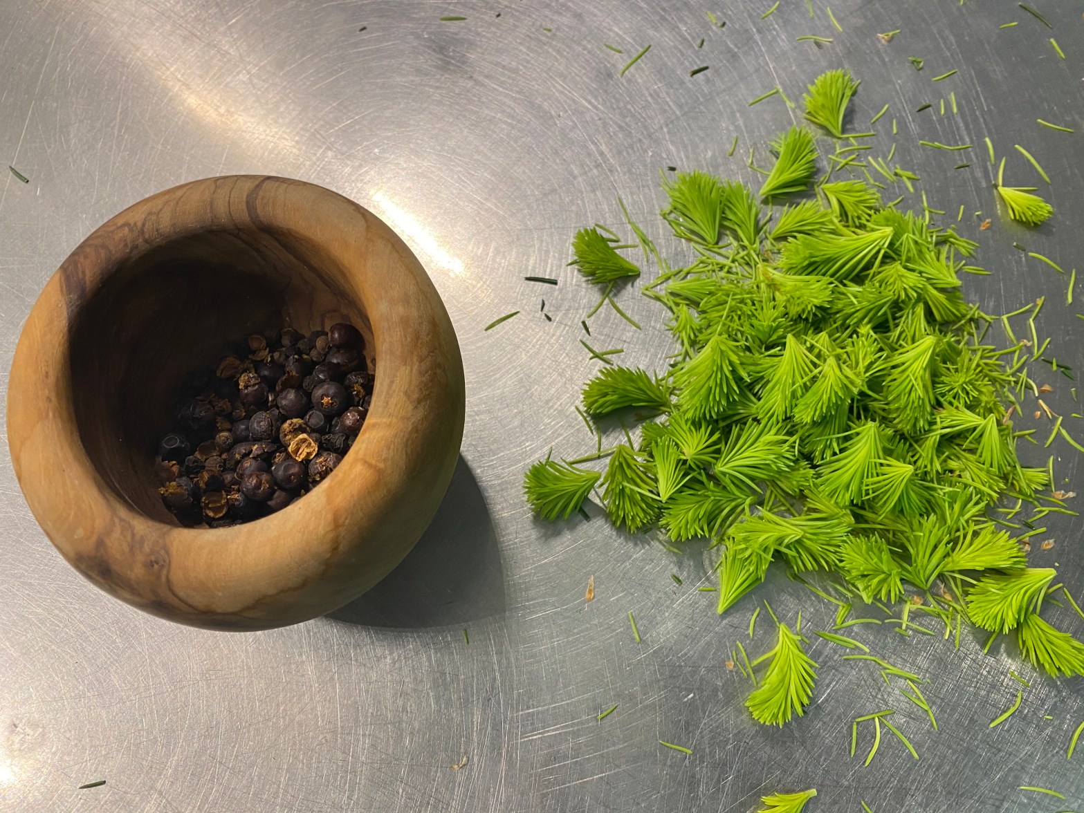 Was man alles mit frisch erlegtem Maibock machen kann, könnt Ihr einfach auf Instagram verfolgen. Da wir viel Wild hatten im Mai, und auch die Temperaturen entsprechend niedrig waren, haben wir kurzerhand noch einmal geräuchert (dazu mehr in einem Beitrag weiter unten). Dieses Mal, weil die Jahreszeit passte, haben wir frische Fichtenspitzen mit eingelegt. Ein Experiment, das auf jeden Fall wiederholt wird. Fazit: es darf durchaus noch etwas mehr sein! Der Geschmack ist noch sehr dezent, aber passt wunderbar zum Schinkenaroma. Es gab dann erstmal eine zünftige Brotzeit mit Melone, Käse, Baguette, Reste vom Rehfilet vom Grill, Baguette, mediterrane Kräuterbutter. Einfach und gut.