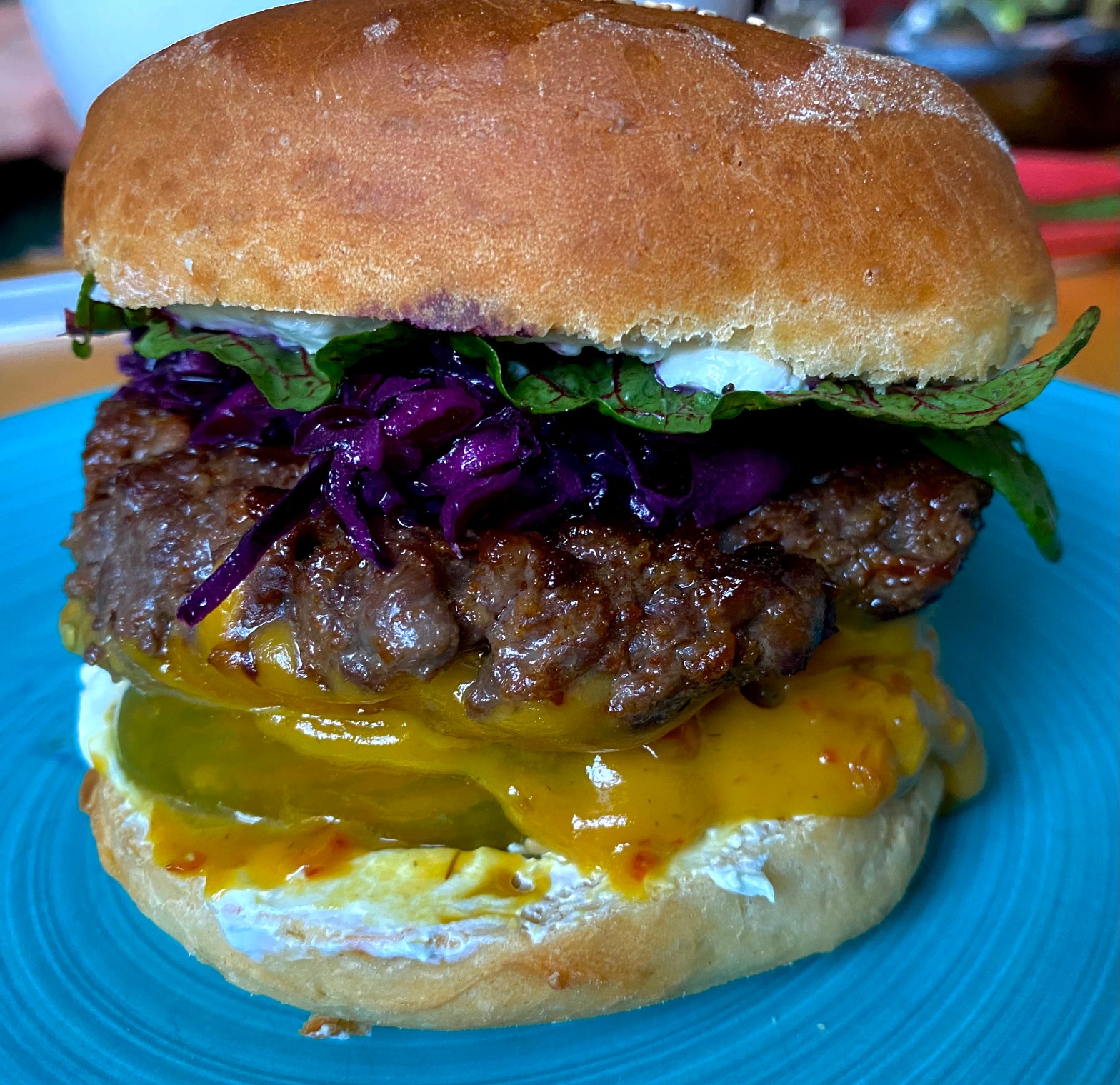 Burger gehen immer – und je nach Jahreszeit variiere ich die Art des Belags. Hier mal nichts besonders, sondern einfach, was gerade im Kühlschrank zu finden war. Die Buns sind selbst gebacken aus einem Hefeteig, der hier mit warmer Milch und Butter sowie einem Ei angesetzt wurde (sonst nehme ich ja immer „nur“ Olivenöl). Die Patties sind aus Rehhack, gewürzt mit dem Bulettengewürz von #Ankerkraut. Zusammengesetzt wurde der Burger so: unteres Bun mit Ziegenfrischkäse bestreichen. Darauf letzte Ernte der grünen Tomaten, dann eine Burger-Currysauce aus der letzten #Foodist Box. Dann das Patti, selbst gemachter Rotkohlsalat, Blutampfer aus dem Garten, Bun mit Ziegenfrischkäse bestrichen zum Abschluss. Änderungen sind natürlich möglich – je nach Geschmack ist alles erlaubt.