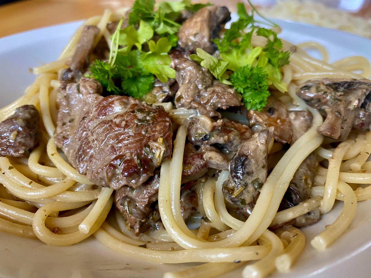 Wilde Küche geht jeden Tag, das möchte ich Euch ja auch mit meinem Blog zeigen. Hier gibt es jetzt Filetspitzen vom Damwild (es geht natürlich auch mit Reh oder Wildschwein), Nudeln nach Wahl und Pilzen nach Wahl. In diesem Fall waren es Spaghetti und braune Champignons. Und so geht das schnelle Gericht: während die Nudeln garen, Olivenöl in einer Pfanne erhitzen und das in dünne Scheiben geschnittene Filet vom Wild anbraten. Mit Meersalz und Pfeffer würzen, herausnehmen. Dann die Pilze in die Pfanne gegeben und garen, gewürzt habe ich sie mit der Mischung „Pilzpfanne“ von @Ankerkraut. Das Fleisch wieder zugeben sowie ein Frischkäse, ich hatte gerade einen Topf offen im Kühlschrank, eine Mischung mit Kräutern. Es geht aber auch alles andere, nach Geschmack. Dazu noch Creme fraiche und alles ein wenig schmurgeln lassen, wenn es zu dick wird einfach ein wenig Nudelwasser dazu geben. Am Ende alles vermischen und anrichten. So einfach und lecker geht Wild – und das jeden Tag. Das fixe Gericht ist in 30 Minuten fertig!