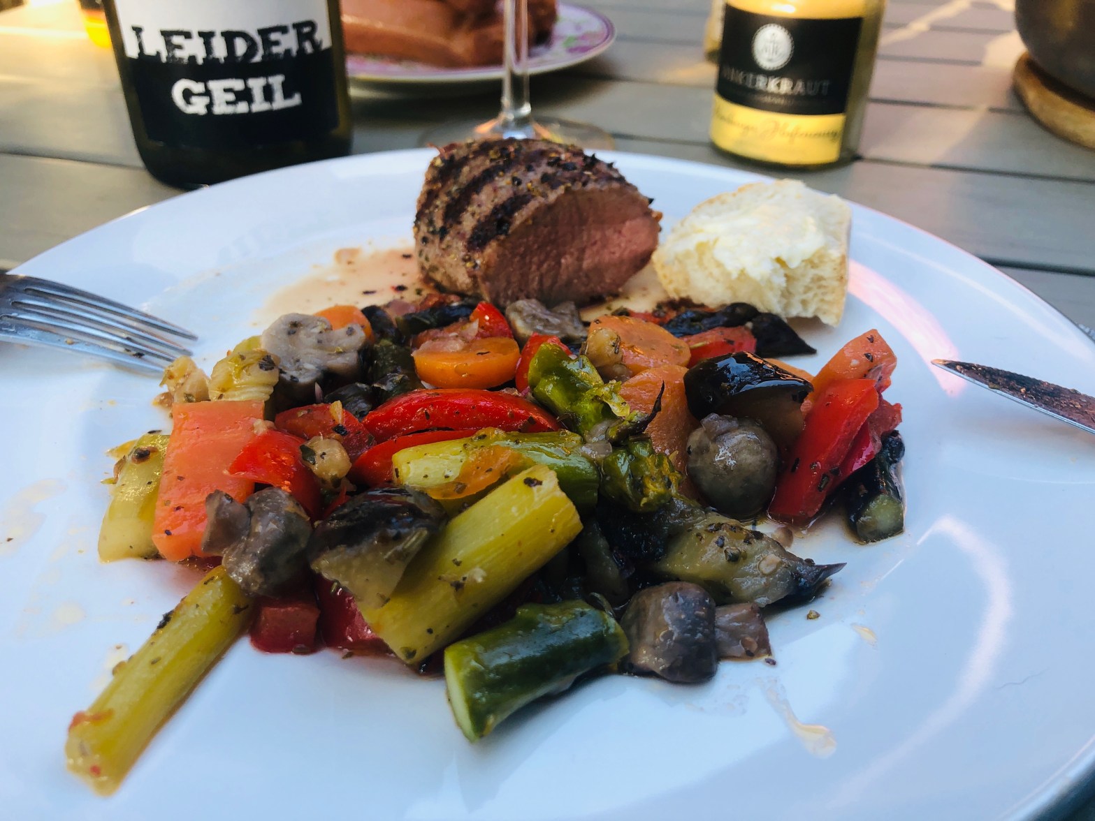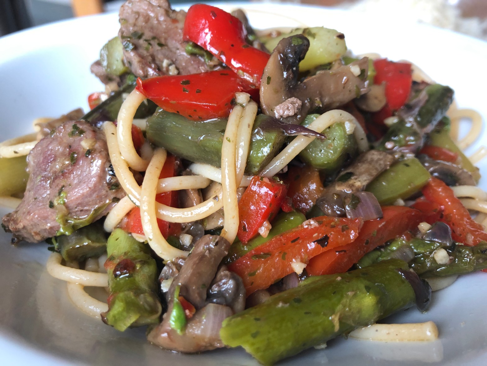 Filetspitzen mit Gemüse, hier Spargel, da gerade Saison ist, und Spaghetti Aglio e Olio. Die Zubereitung ist denkbar einfach. Filet in Scheiben schneiden, in Olivenöl anbraten, dann das kleingeschnittene Gemüse dazugeben (alles was der Kühlschrank hergibt), bei mir waren es in erster Linie grüner Spargel, Paprika und Champignons. Kurz mitbraten, bis alles gar ist. Dann„Wie beim Italiener“ weiterlesen