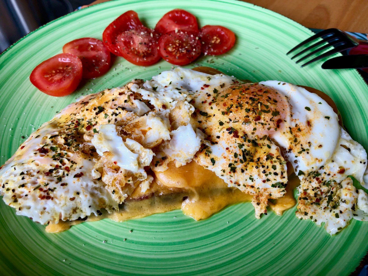 Strammer Max in der Version mit Wildschweinsalami aus unseren erlegten Sauen, Tomaten, Cheddar Käse, Spiegelei – das Ganze auf einem köstlichen Sauerteigbrot, in weniger als 10 Minuten fertig und super lecker. Als Gewürze kamen das Tomatensalz und der Rührei-Mix von Ankerkraut zum Einsatz. (Werbung wegen Produktnennung)